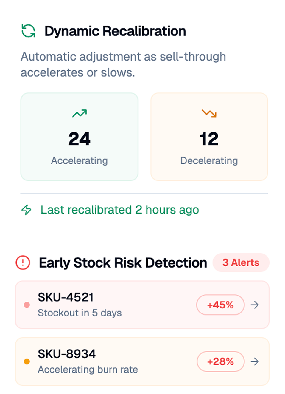 Automatically adjusts forecasts when sell-through accelerates or slows—no manual rework needed.